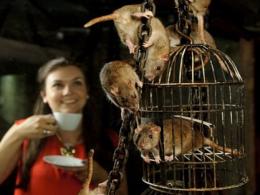 導(dǎo)語(yǔ):據(jù)英國(guó)《每日郵報(bào)》報(bào)道,英國(guó)著名景點(diǎn)倫敦地牢 (London Dungeon)管理方日前開(kāi)放了一個(gè)老鼠咖啡屋,客人可與老鼠和平相處,并為老鼠飽受詬病的形象正名。英國(guó)"老鼠咖啡屋"開(kāi)張,顧客喝咖啡時(shí)18只老鼠滿屋跑,有些甚至?xí)?.....